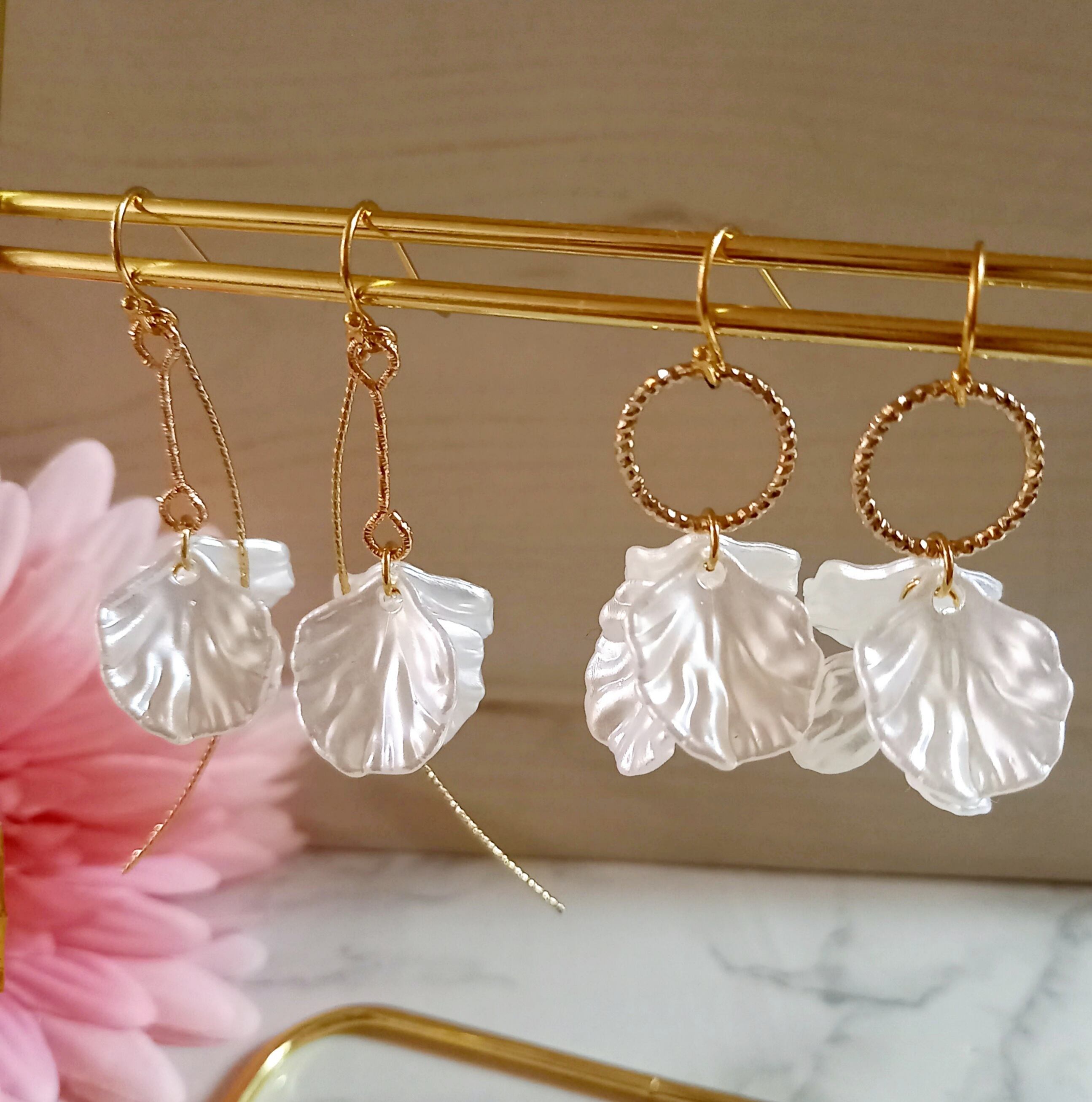 フラワーペタルピアス パールホワイト ロングタイプ | yumecocolino