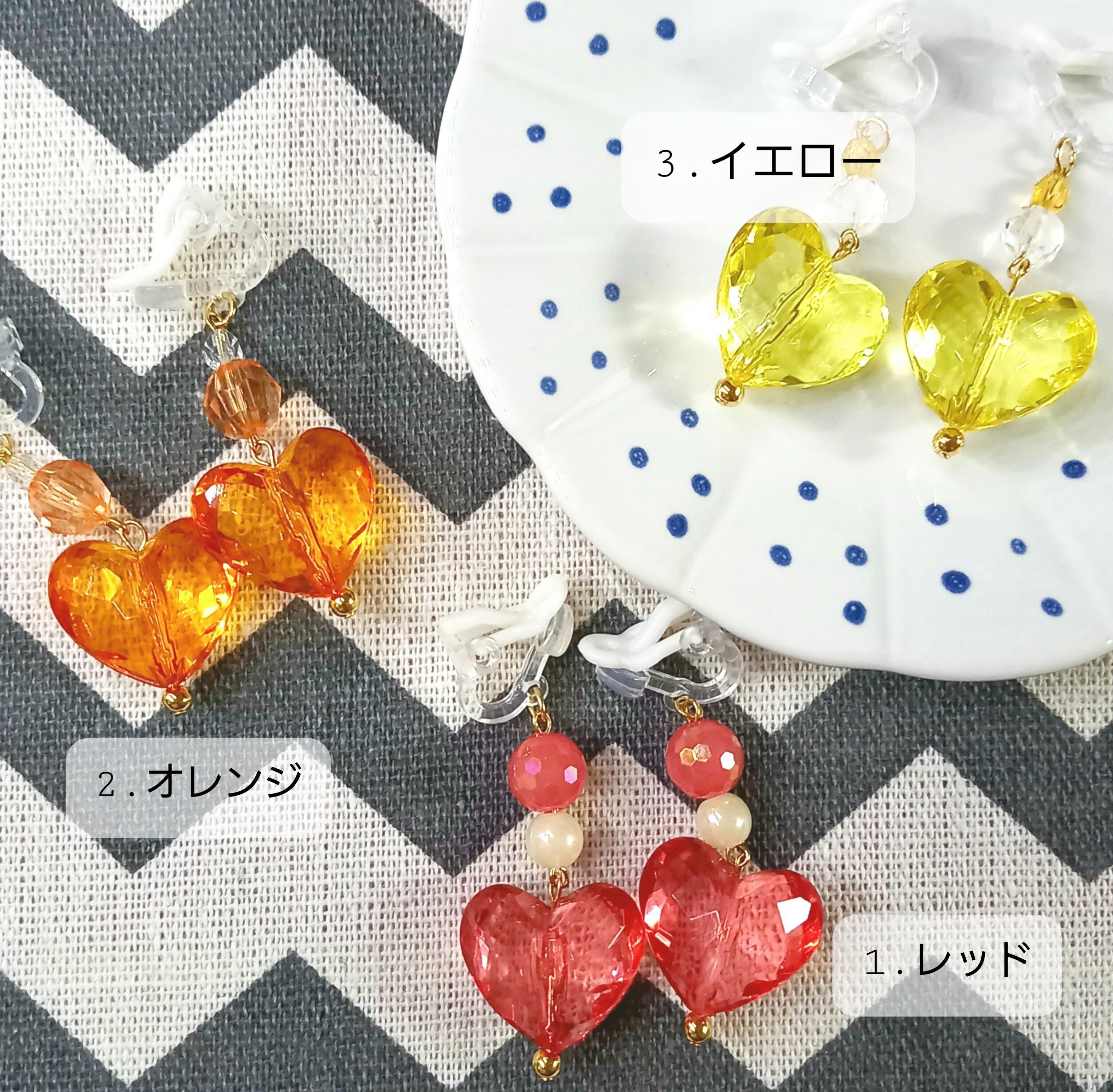 ぷっくりしたハートのビーズが可愛いイヤリングです。