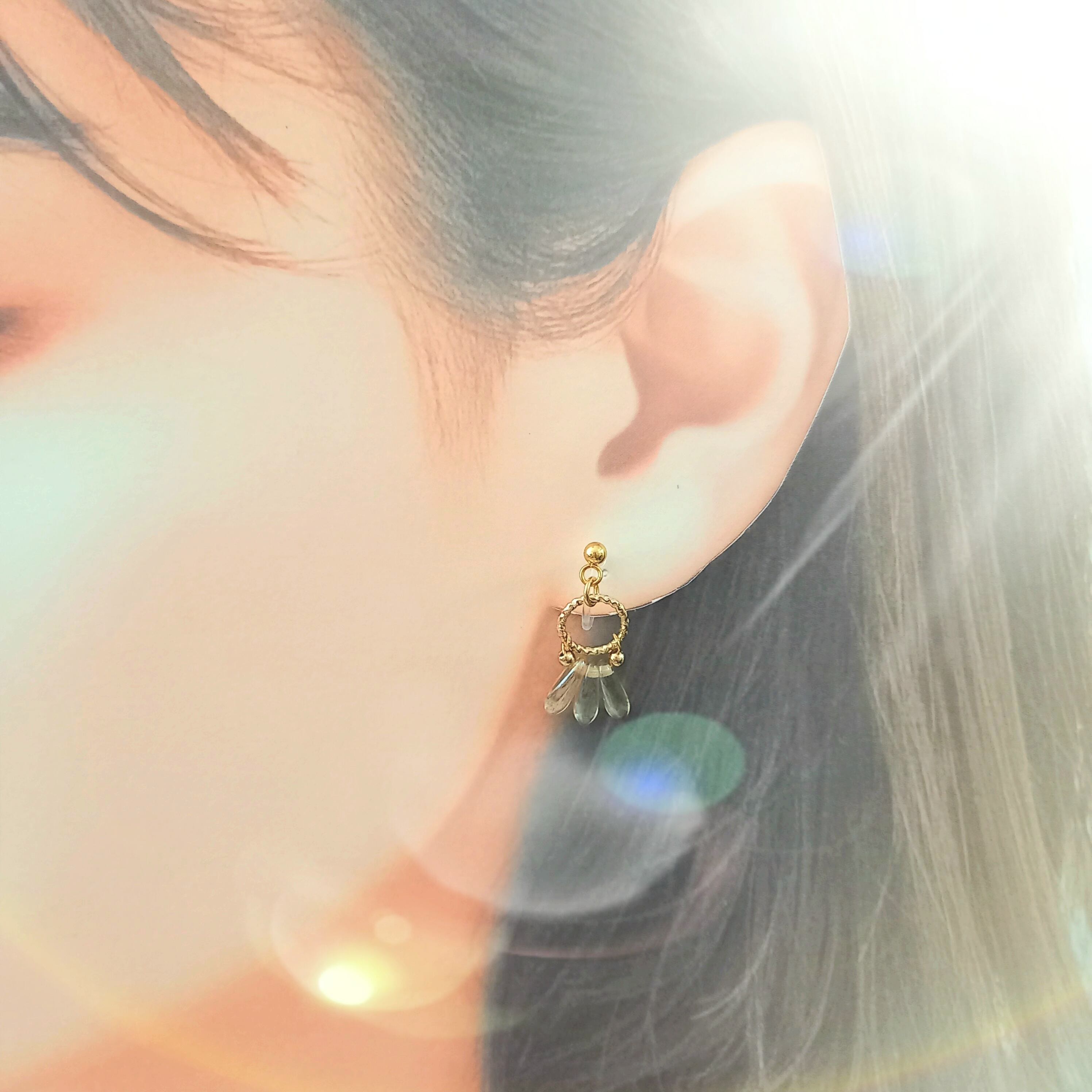 チェコビーズをフリンジ風に並べたピアスです。(3粒type)