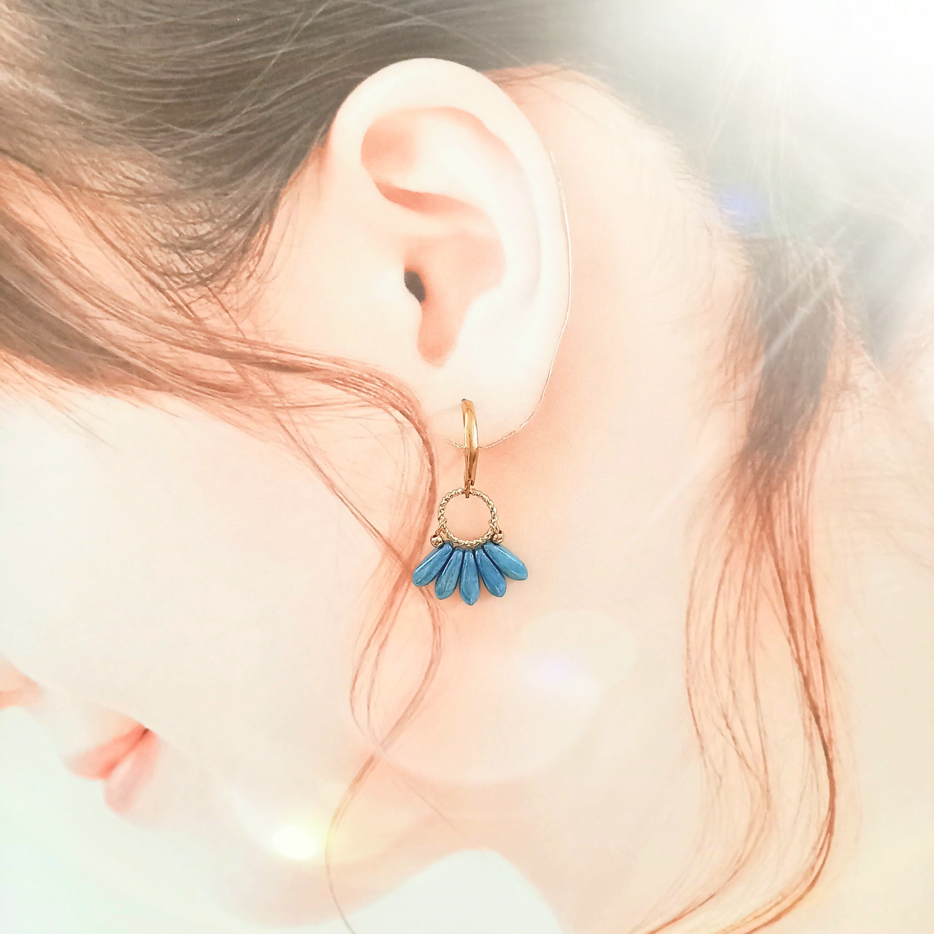 チェコビーズ フリンジ風ピアス(5粒type)※ピアスtype・イヤリング交換可能