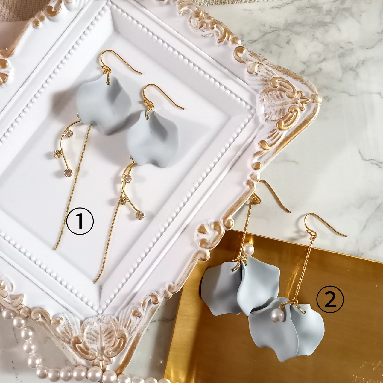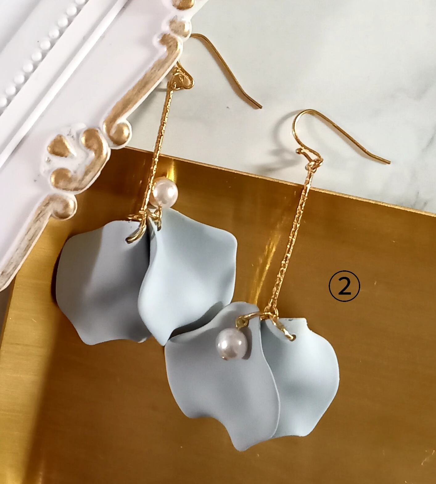 やわらかな色合いの花びらがゆらゆら可愛いピアスです。