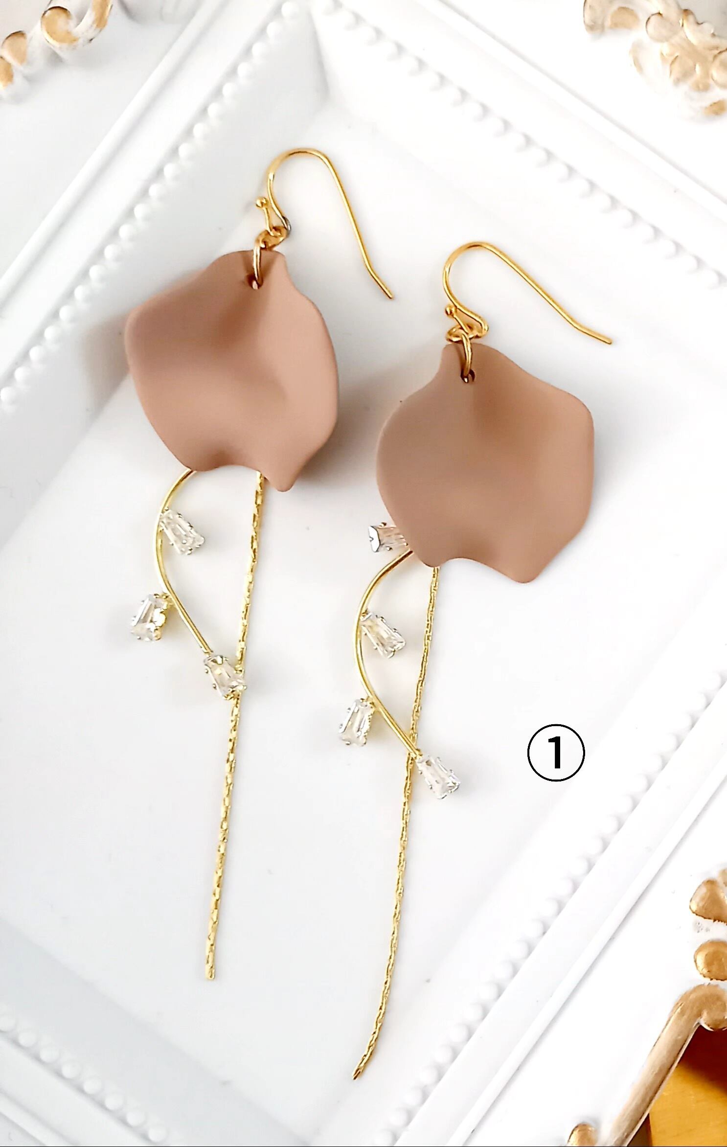 やわらかな色合いの花びらがゆらゆら可愛いピアスです。
