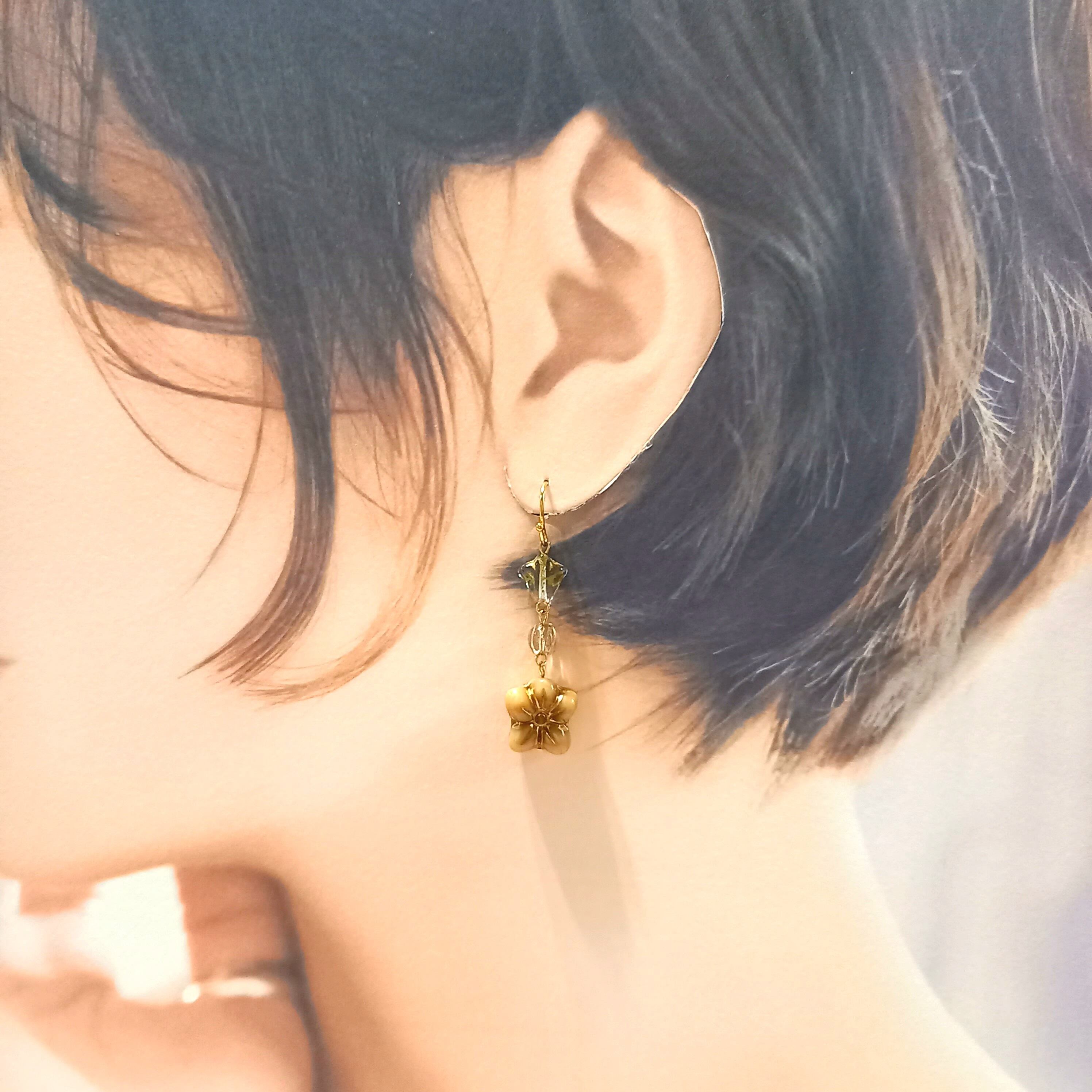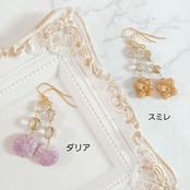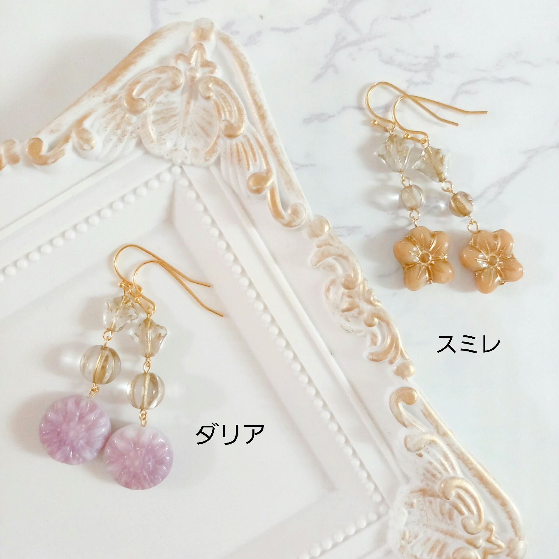 すみれのチェコビーズに透明なビーズを組み合わせたゆらゆら可愛いピアスです。