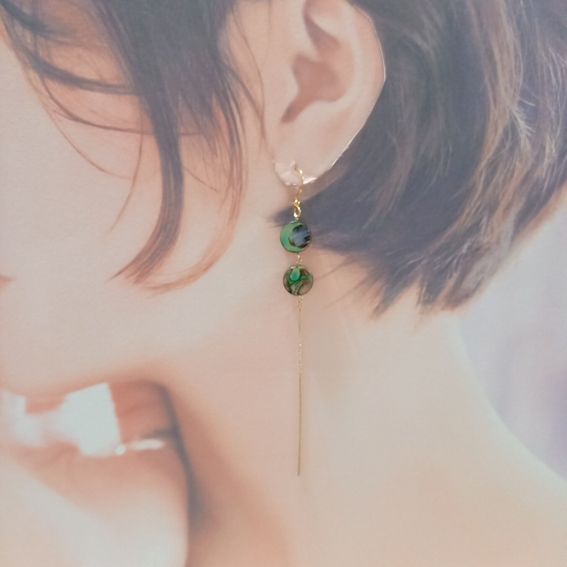 海のオパールといわれるアバロンシェル(コイン型)のピアスです。