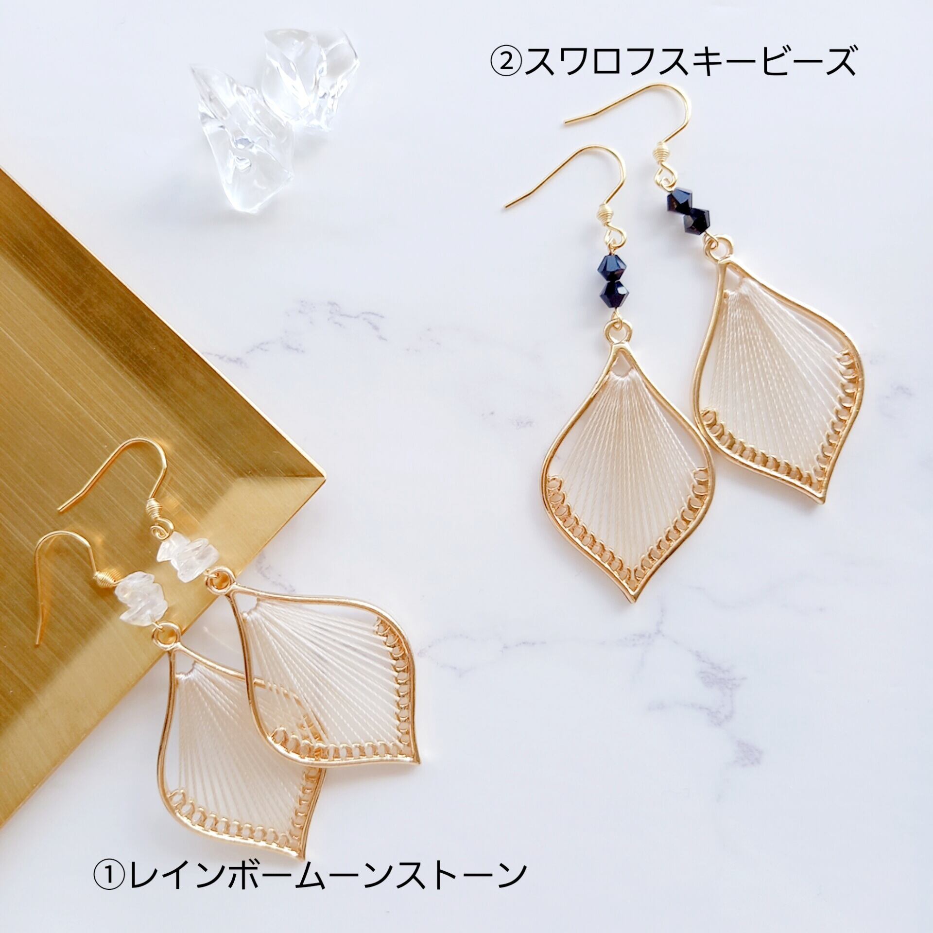 ゴールドフレームのホワイトレース編みリーフパーツに