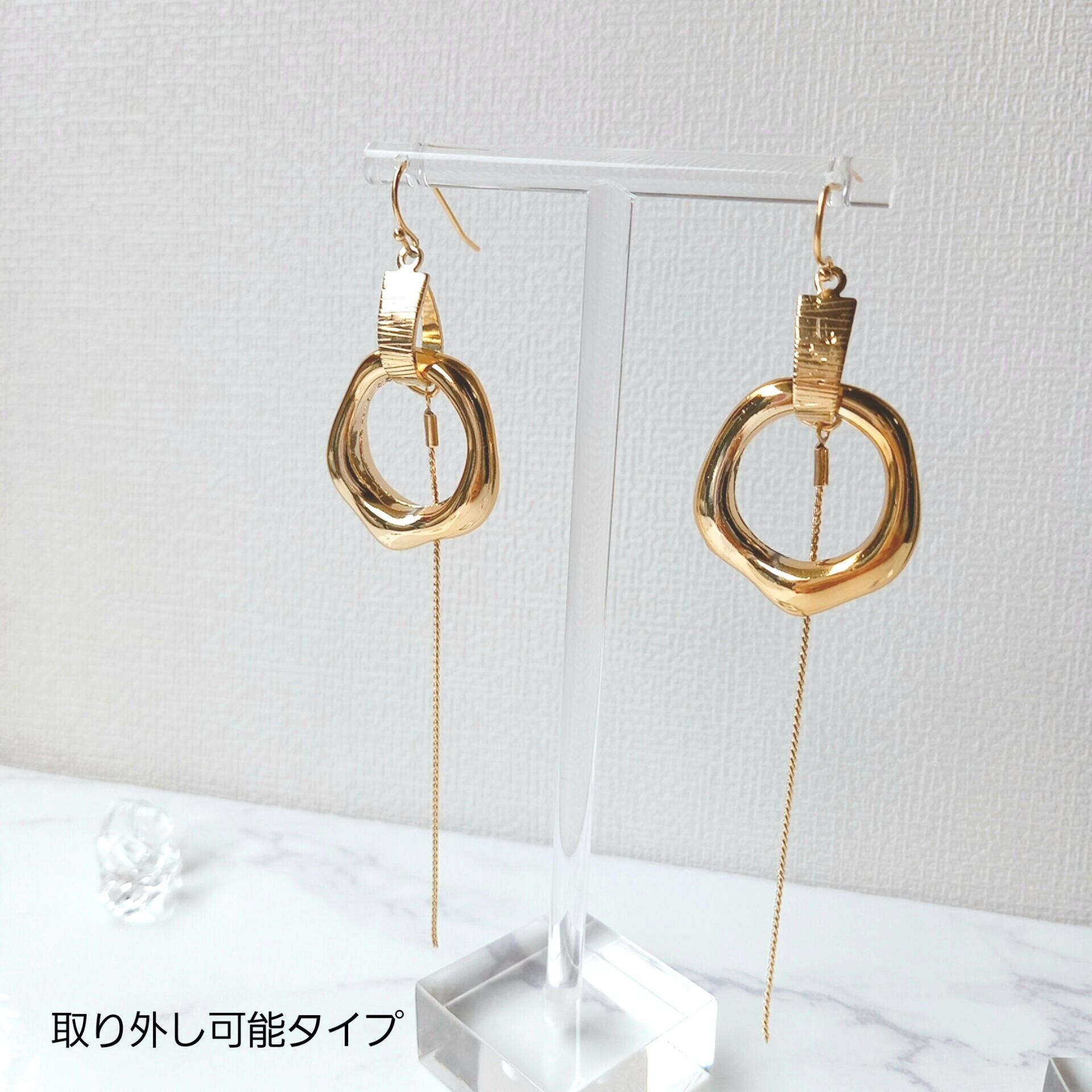 チェーンをコネクターに引っかけて、お好みでつけ外し可能なタイプにもアレンジ可能です。ご相談ください。
