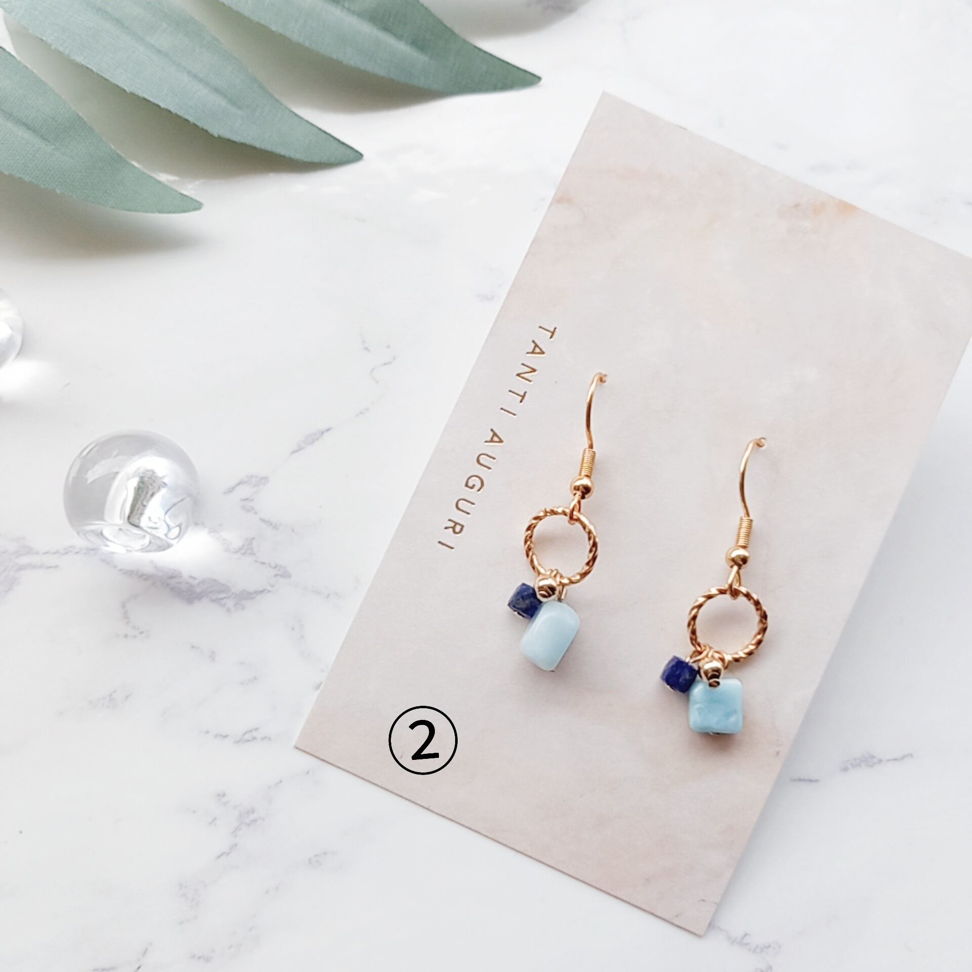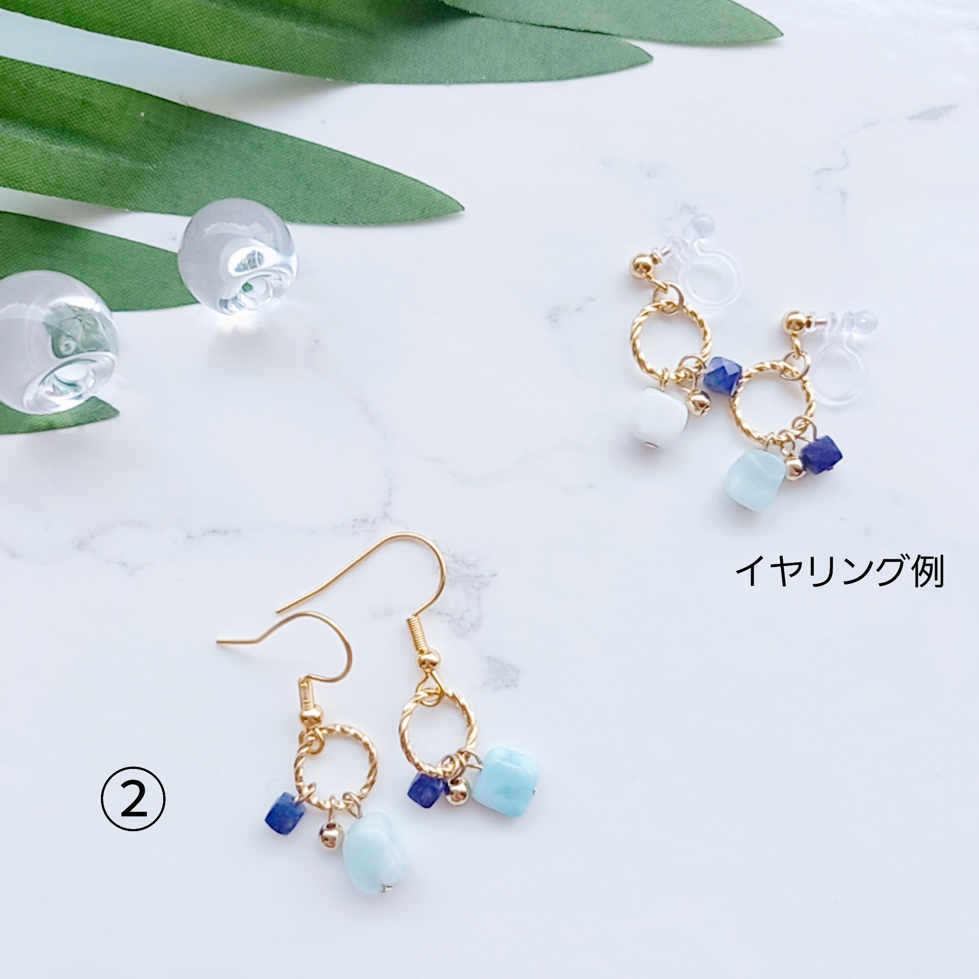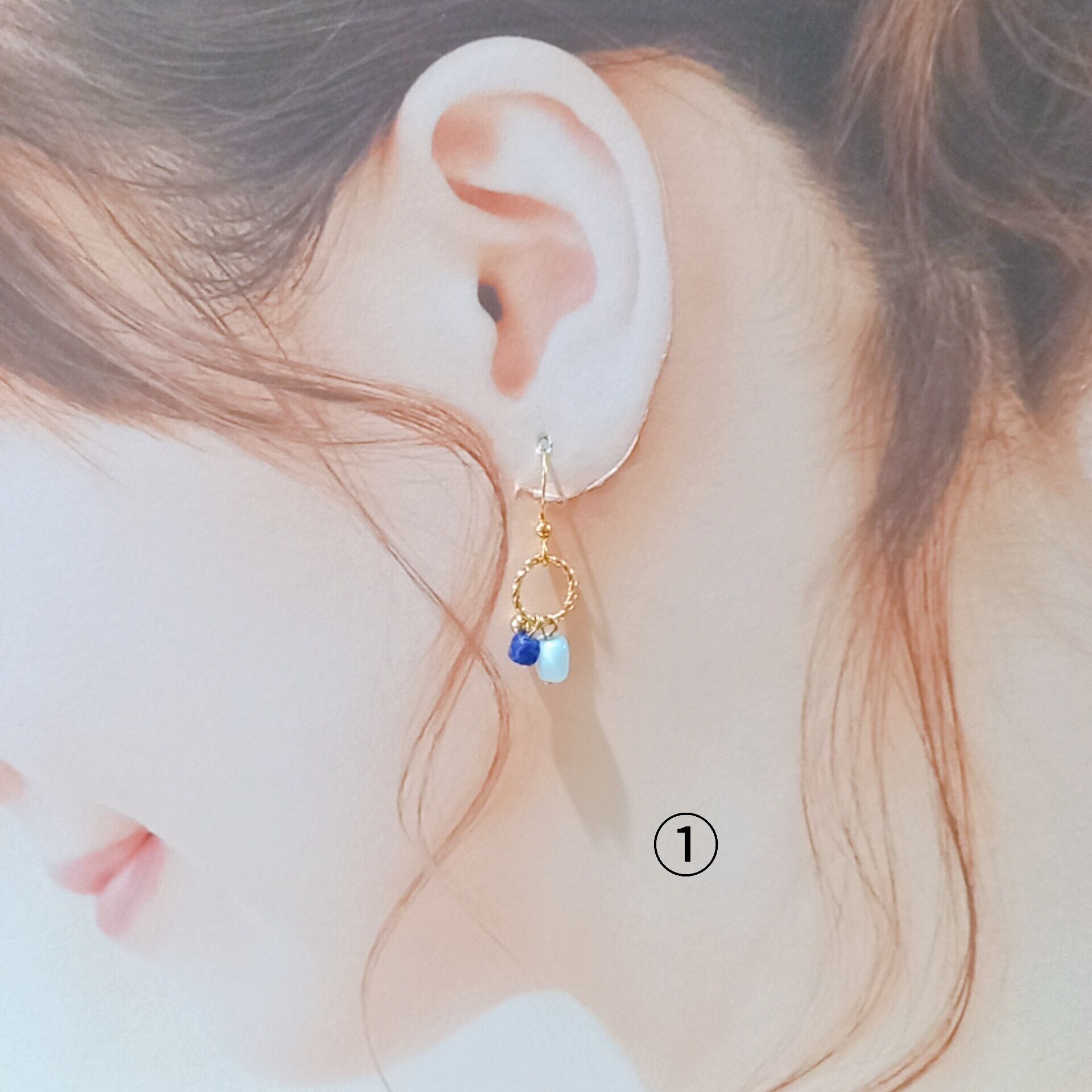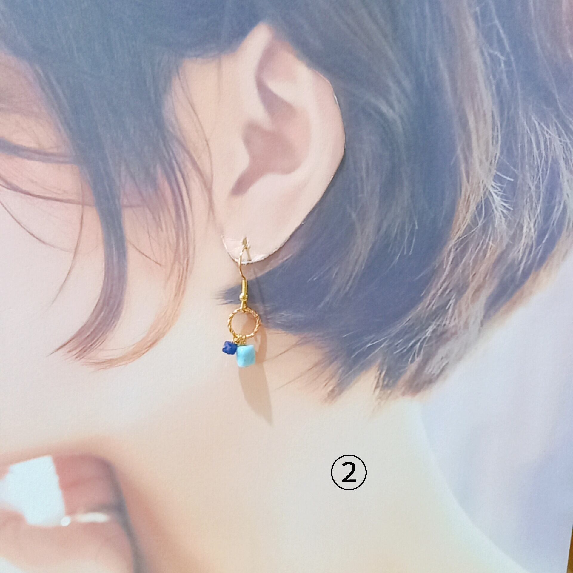 ①と②はピアスのデザインが少し違うため