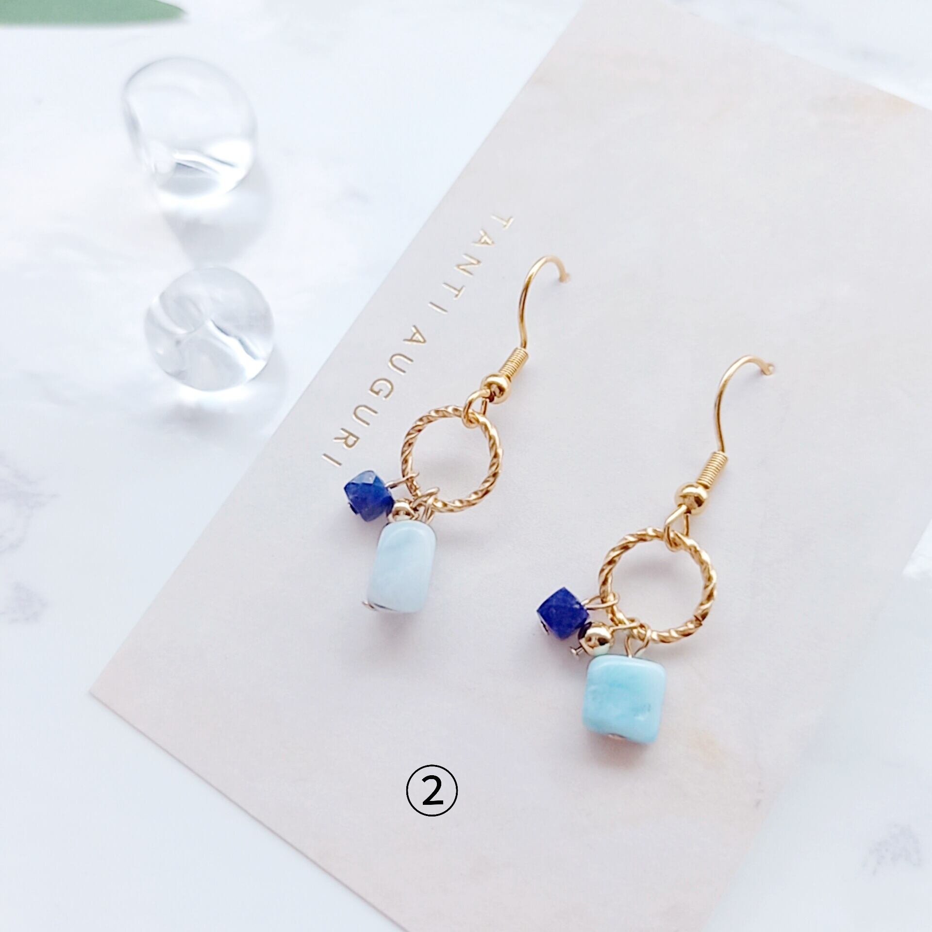 天然石ピアス アイスラリマー&ラピスラズリ○イヤリングへ交換可能