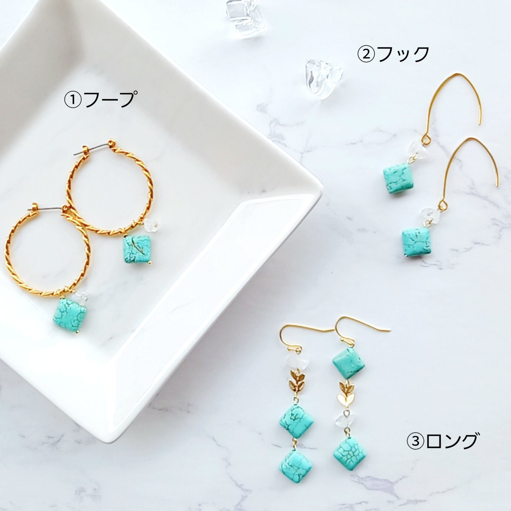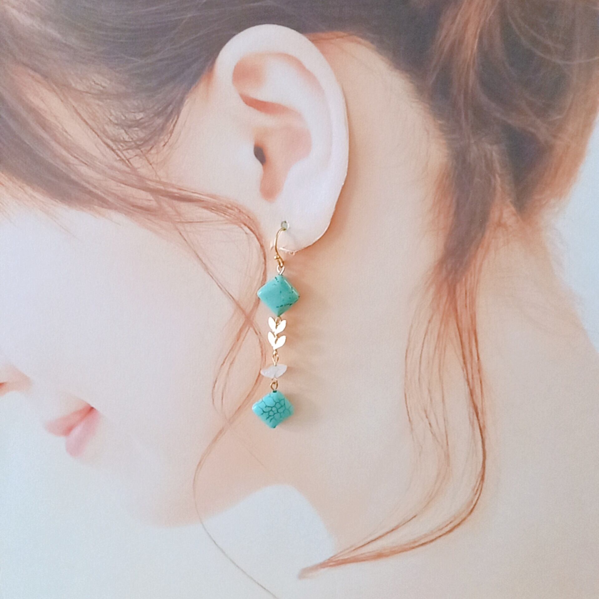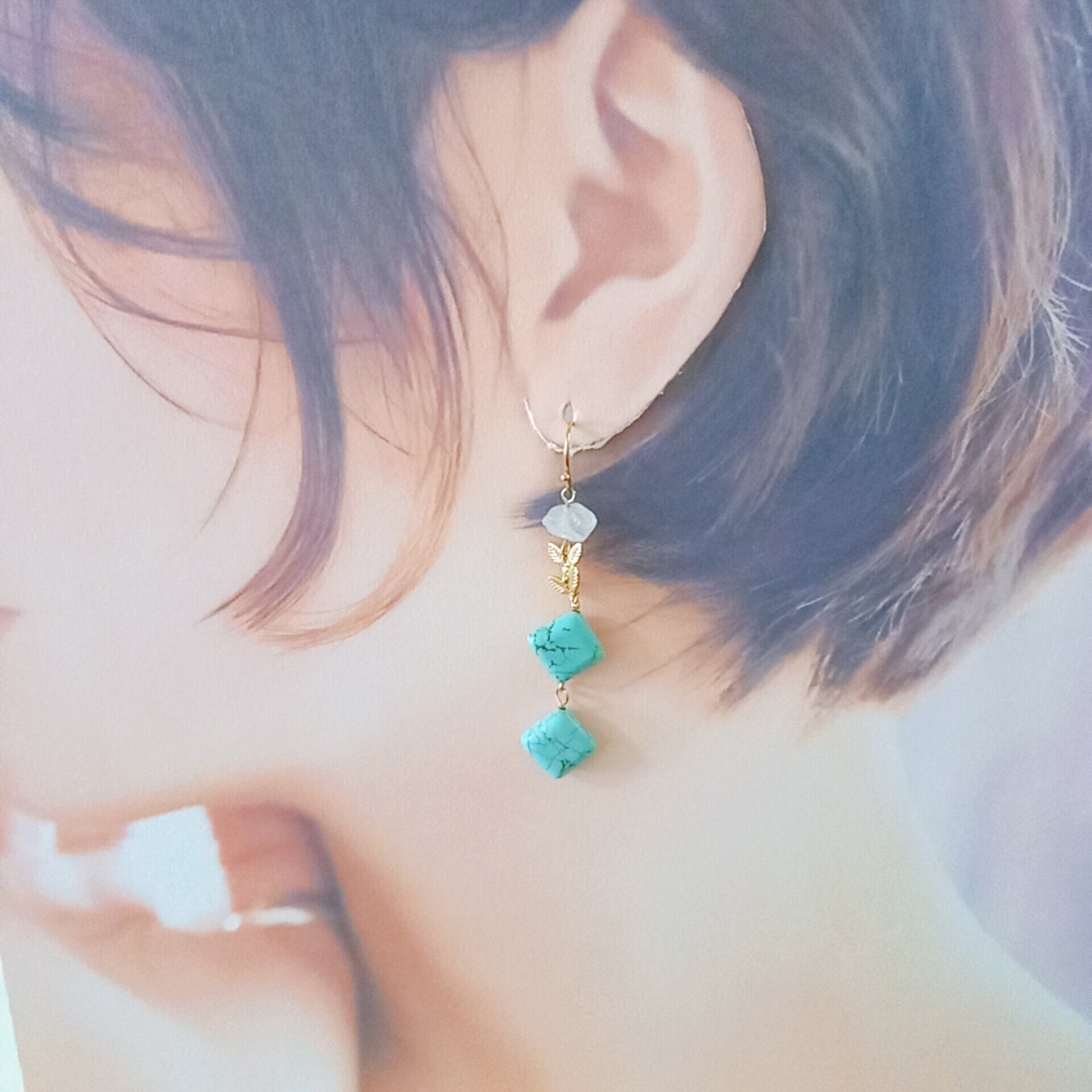 天然石ピアス ③マグネサイトターコイズ○イヤリングへ交換可能