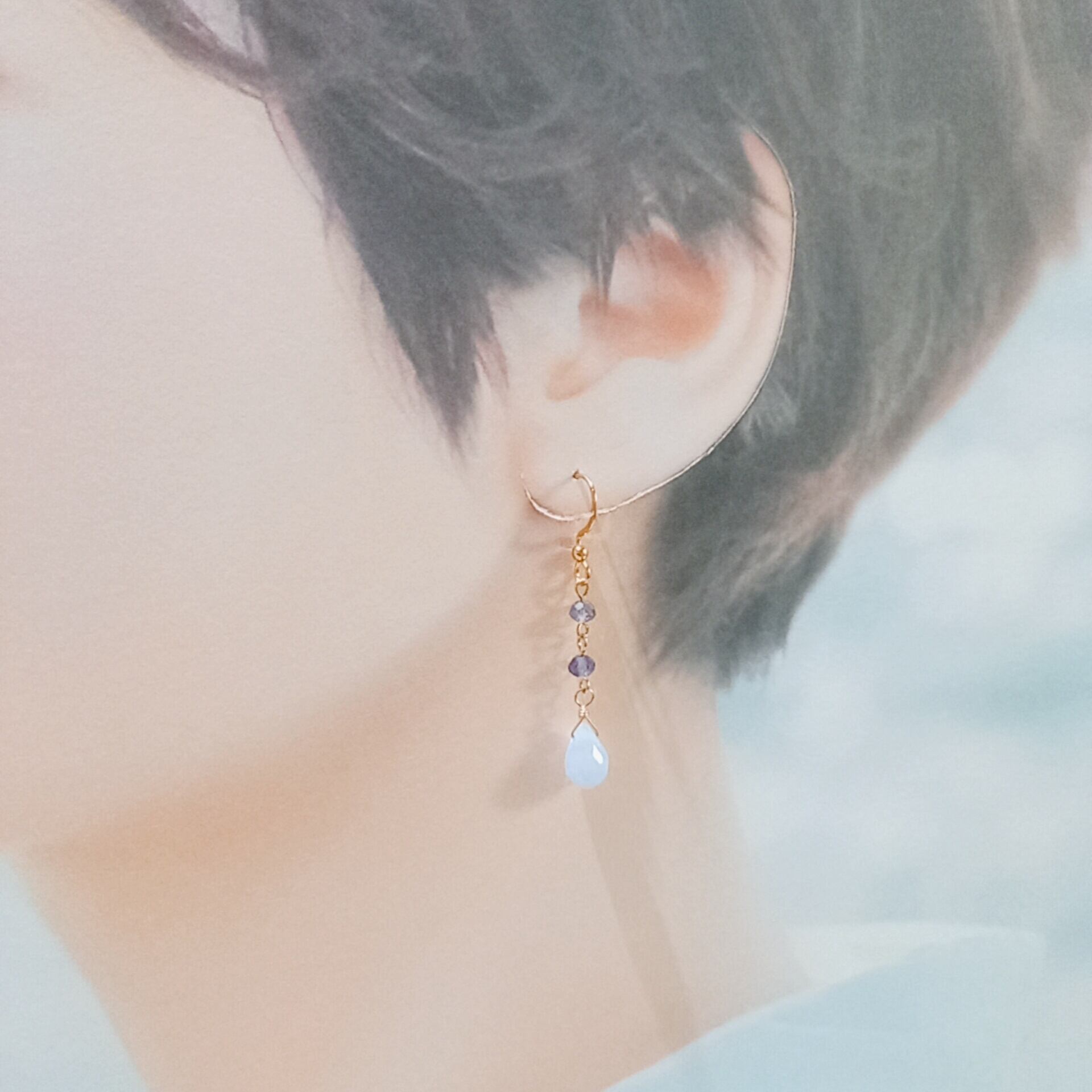 天然石ピアス ブルーレースアゲート アイオライト ○イヤリングへ交換可能