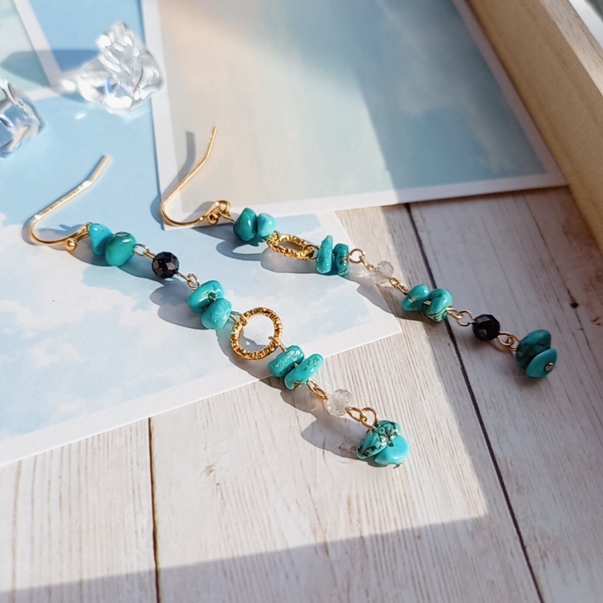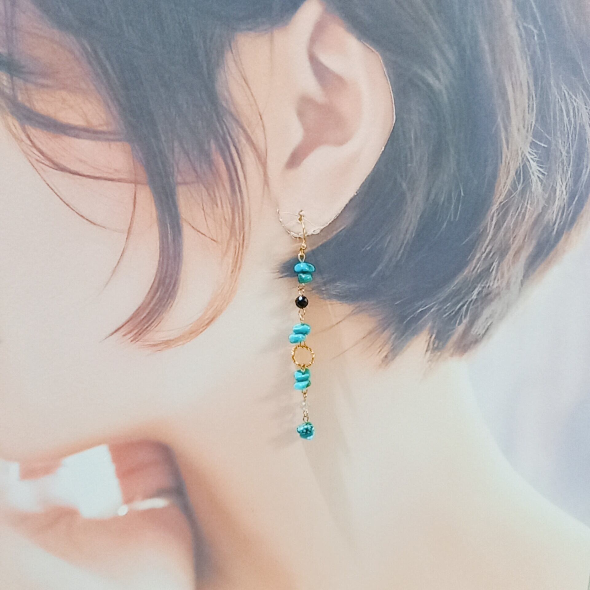 天然石ピアス ターコイズ ○イヤリングへ交換可能