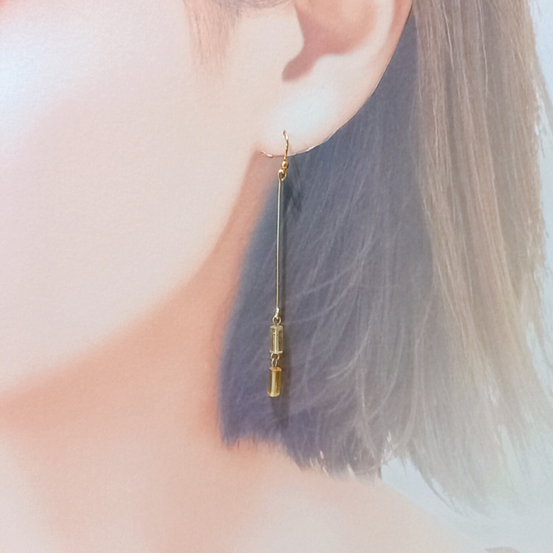 11月の誕生石、天然石シトリンのシンプルピアスです。