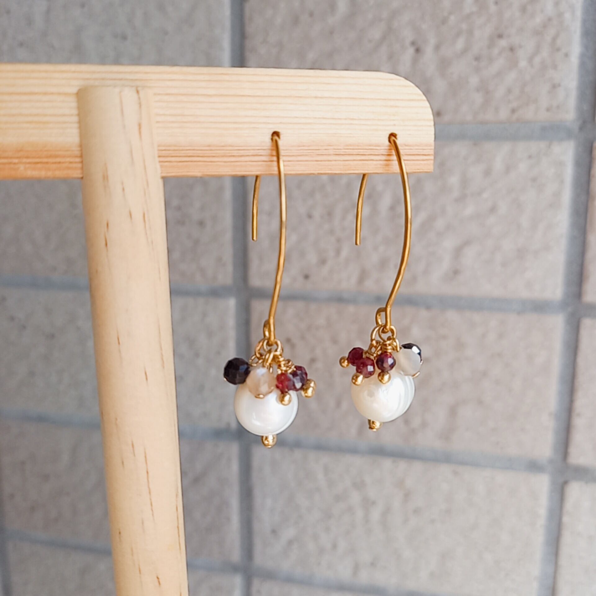 ガーネット、ブラックスピネル、マルチカラームーンストーンを合わせました。