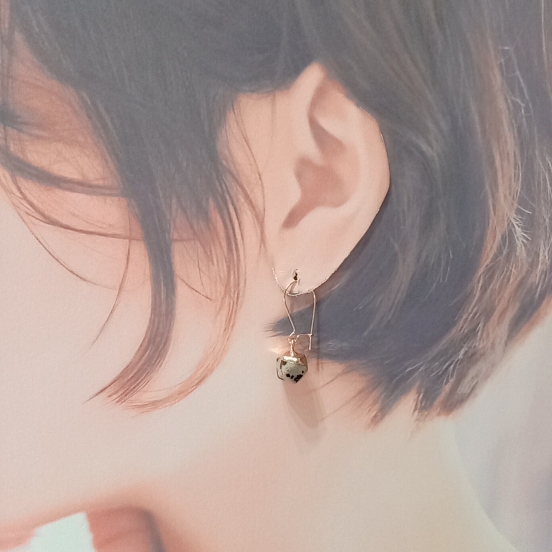 ※変形フープピアスの場合、つけ外しの際は天然石チャームの落下、紛失にご注意ください。(落下防止に、念のためシリコンを付けていますが、完全に防げる訳ではありません。また、見た目に気になる方は外してご使用ください)