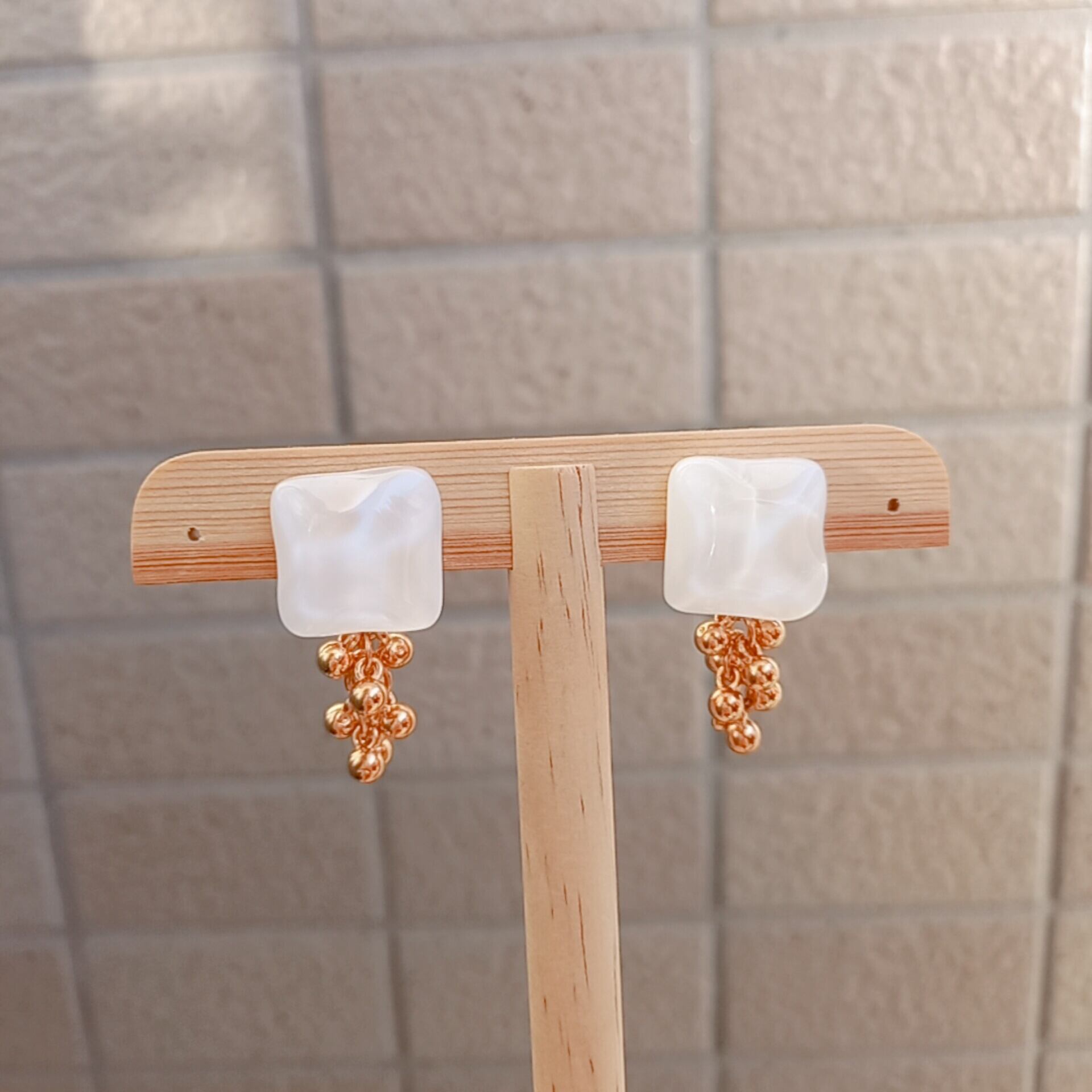 ゴールドとパールミックスのつぶつぶがしゃらしゃら揺れます。