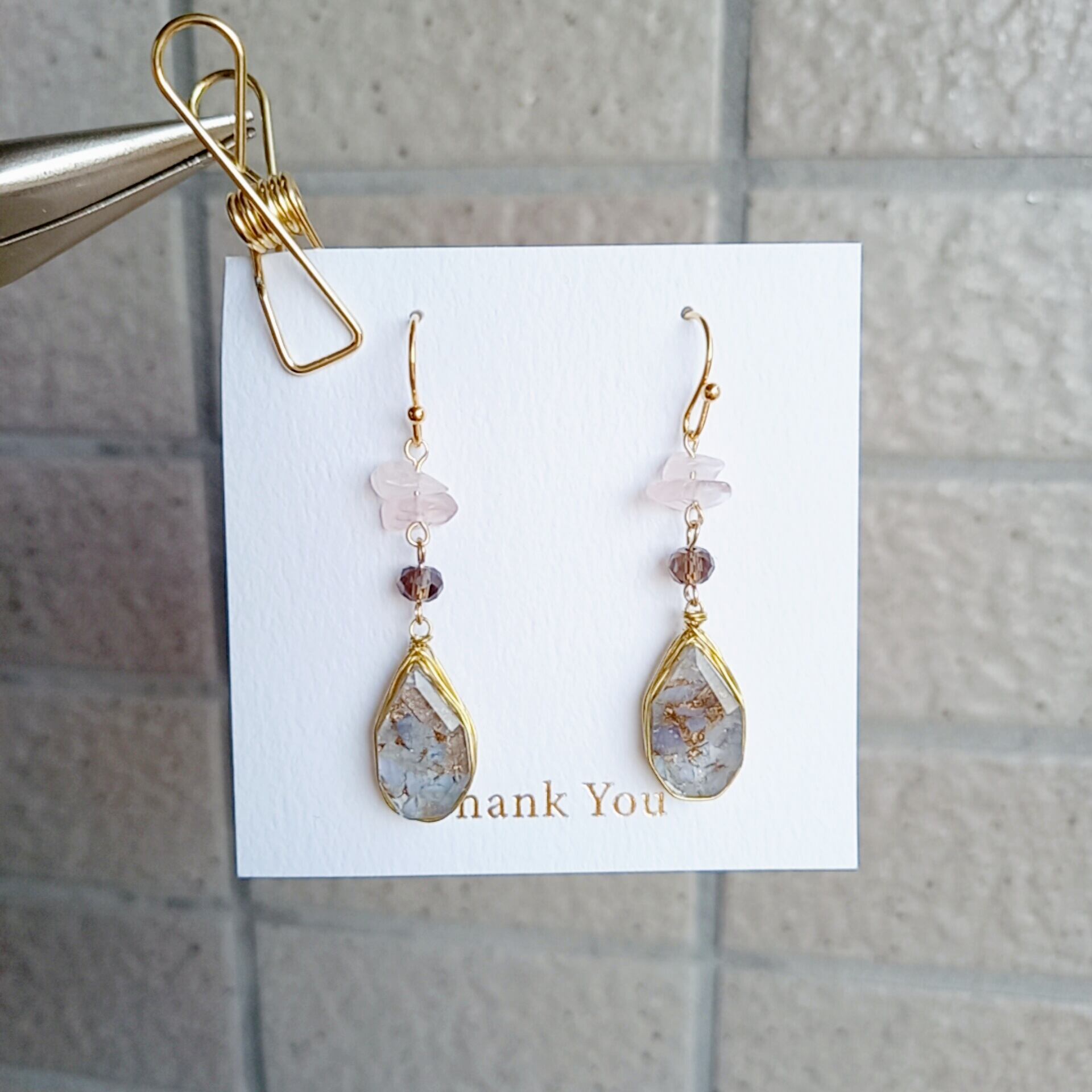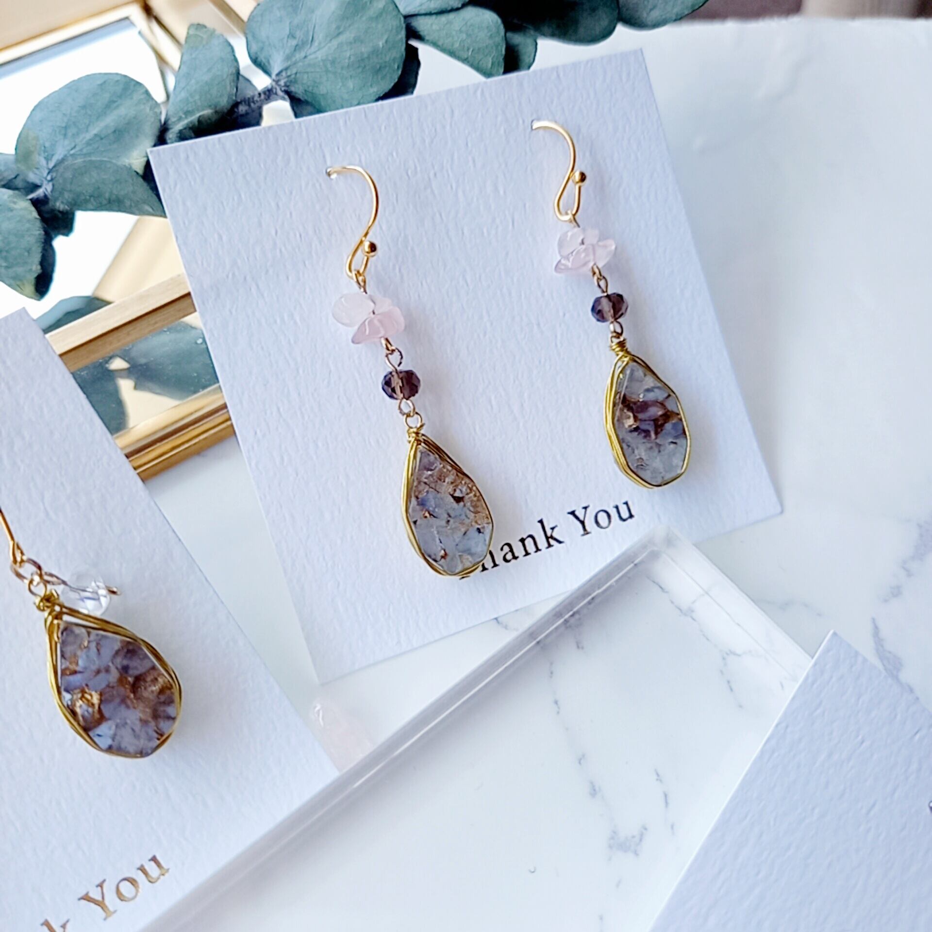 ローズクォーツさざれとスモーキークォーツを合わせて優しい印象に仕上げています✨