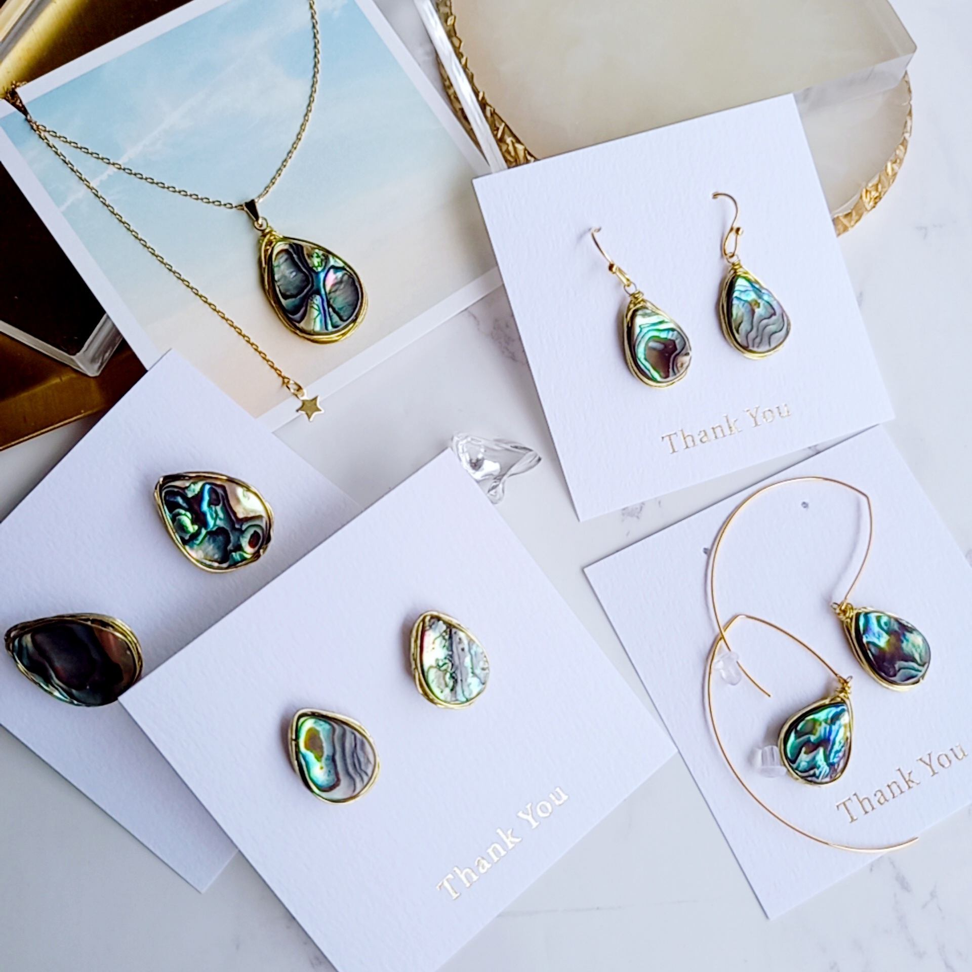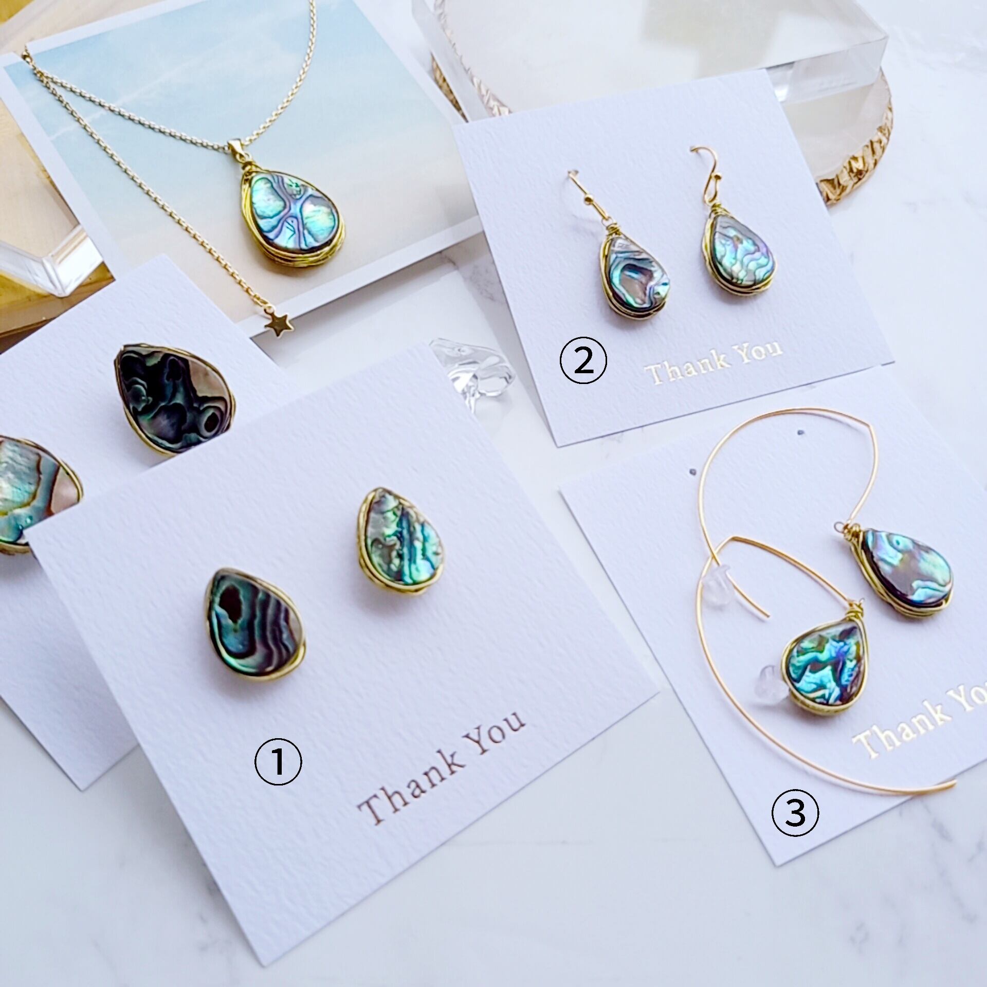 光のあたり具合や見る角度、表裏で柄や輝きが違うのが魅力のアバロンシェル(パウア貝)を