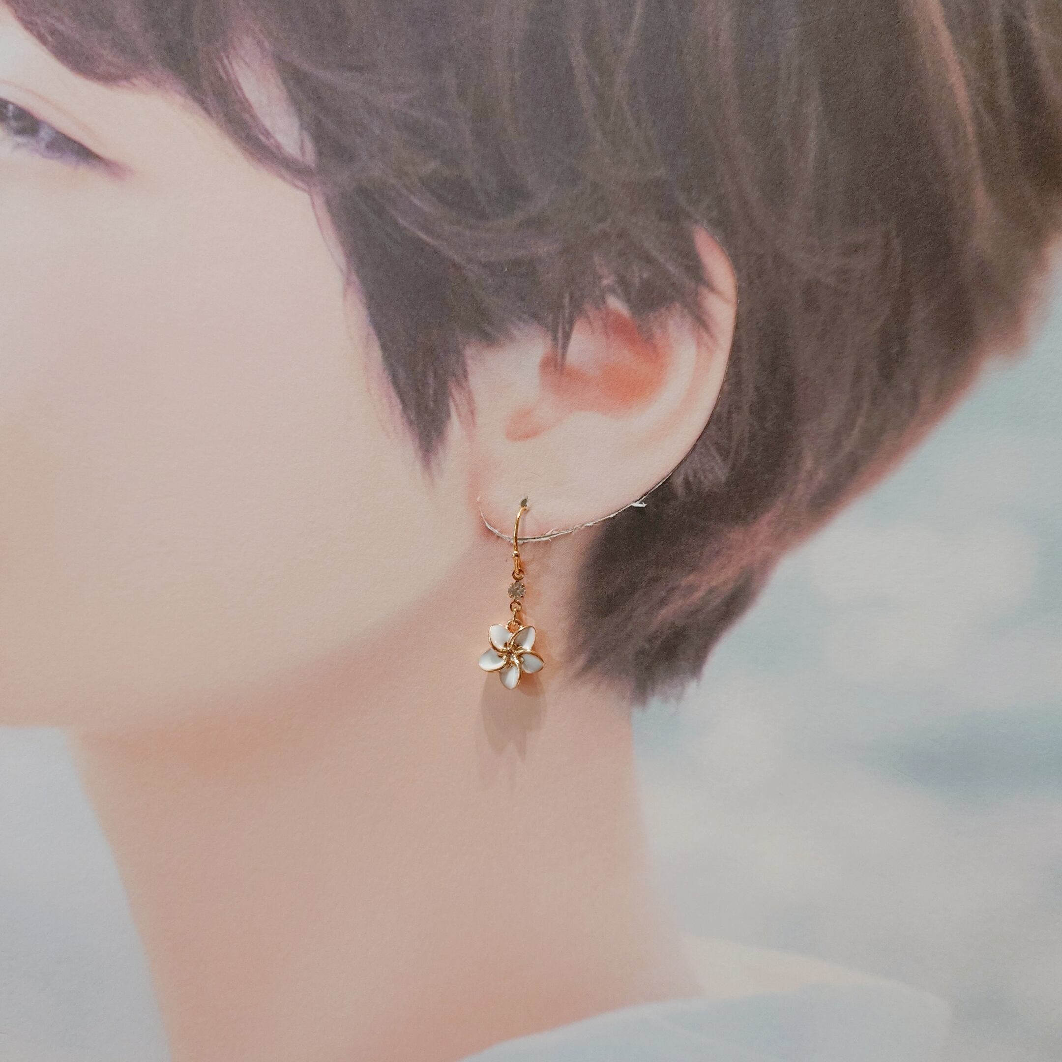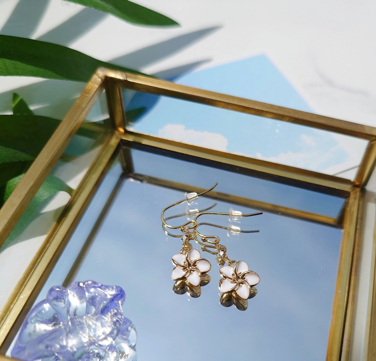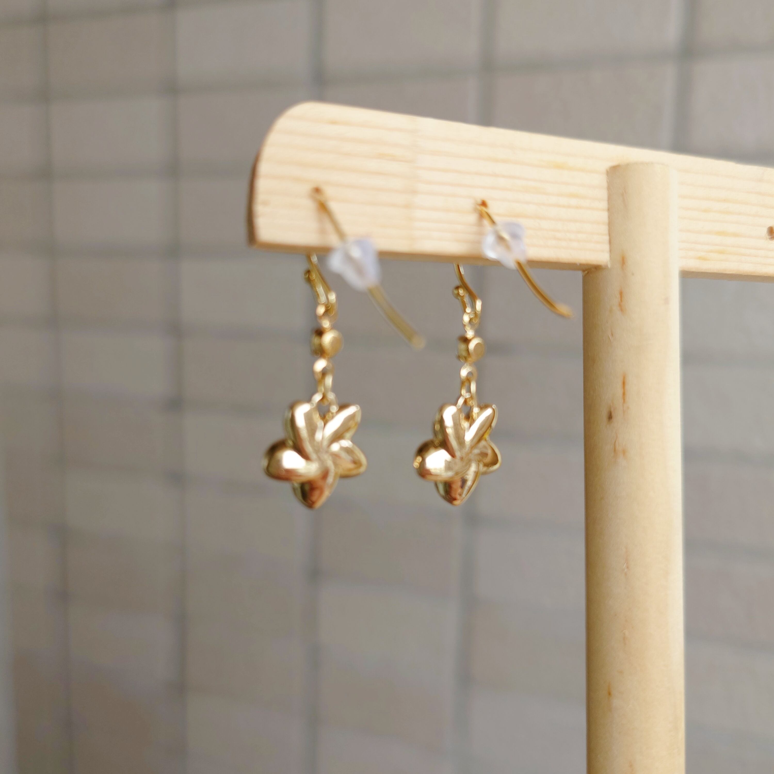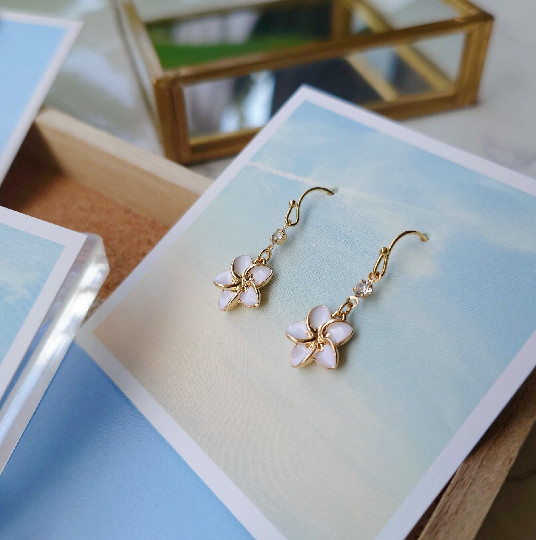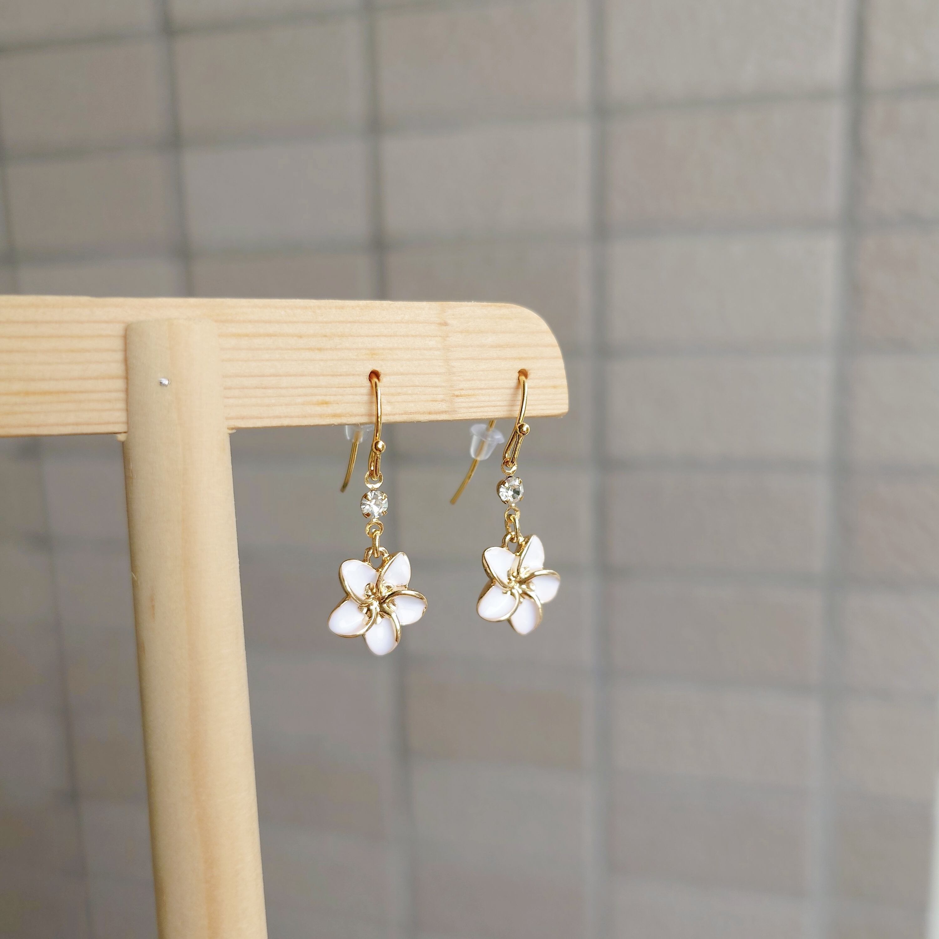 可憐なプルメリアの花が揺れるシンプルピアスです。華やかな装いや、普段使いにもぴったりなアイテムです。