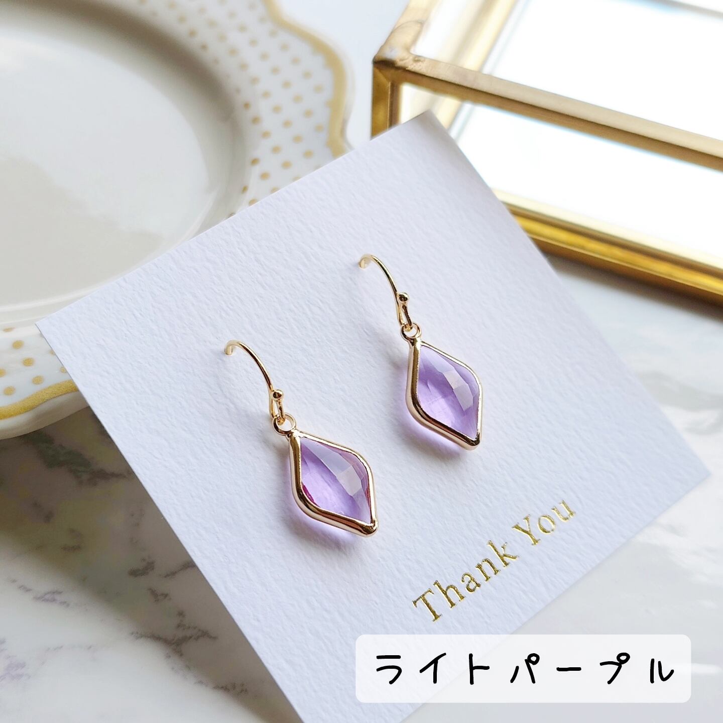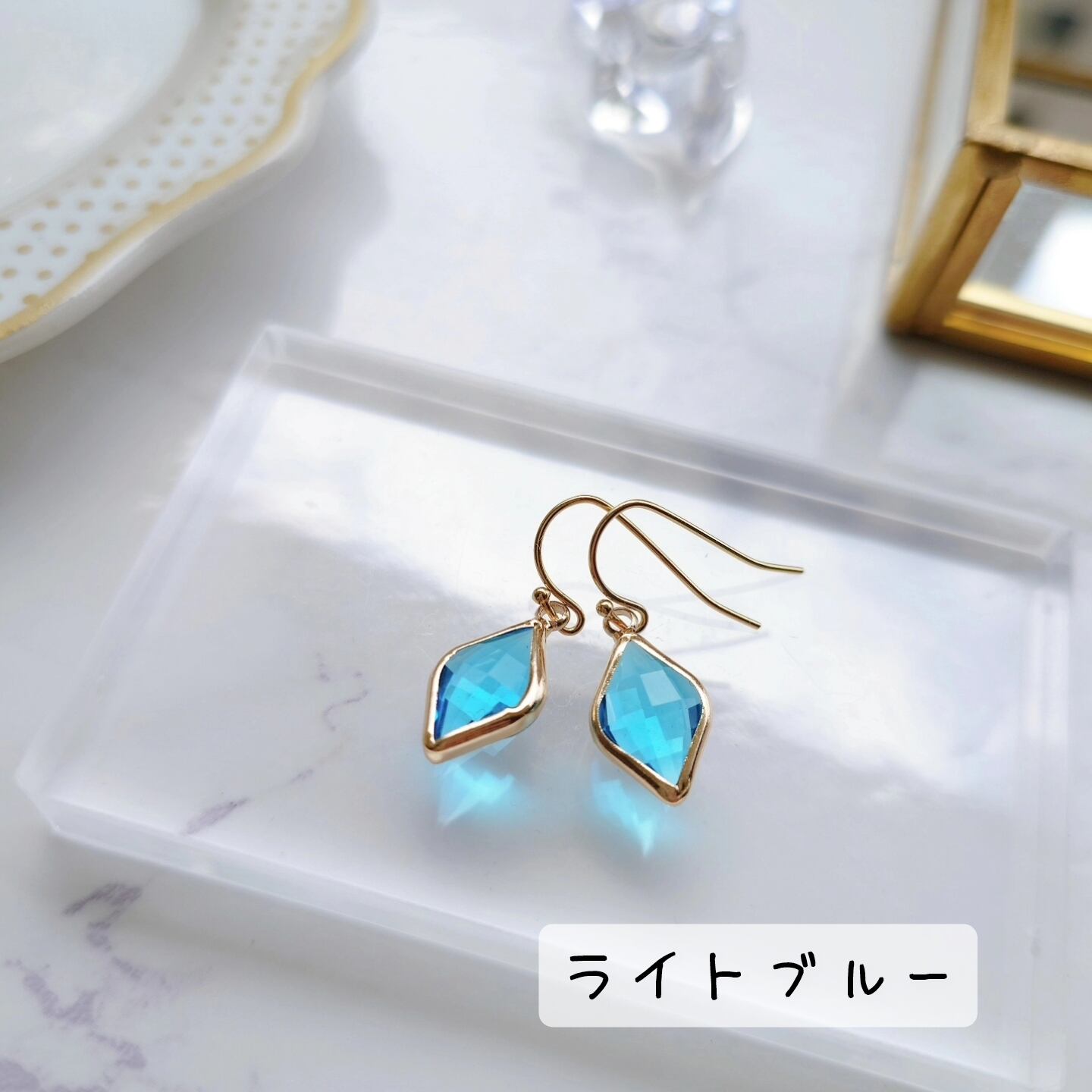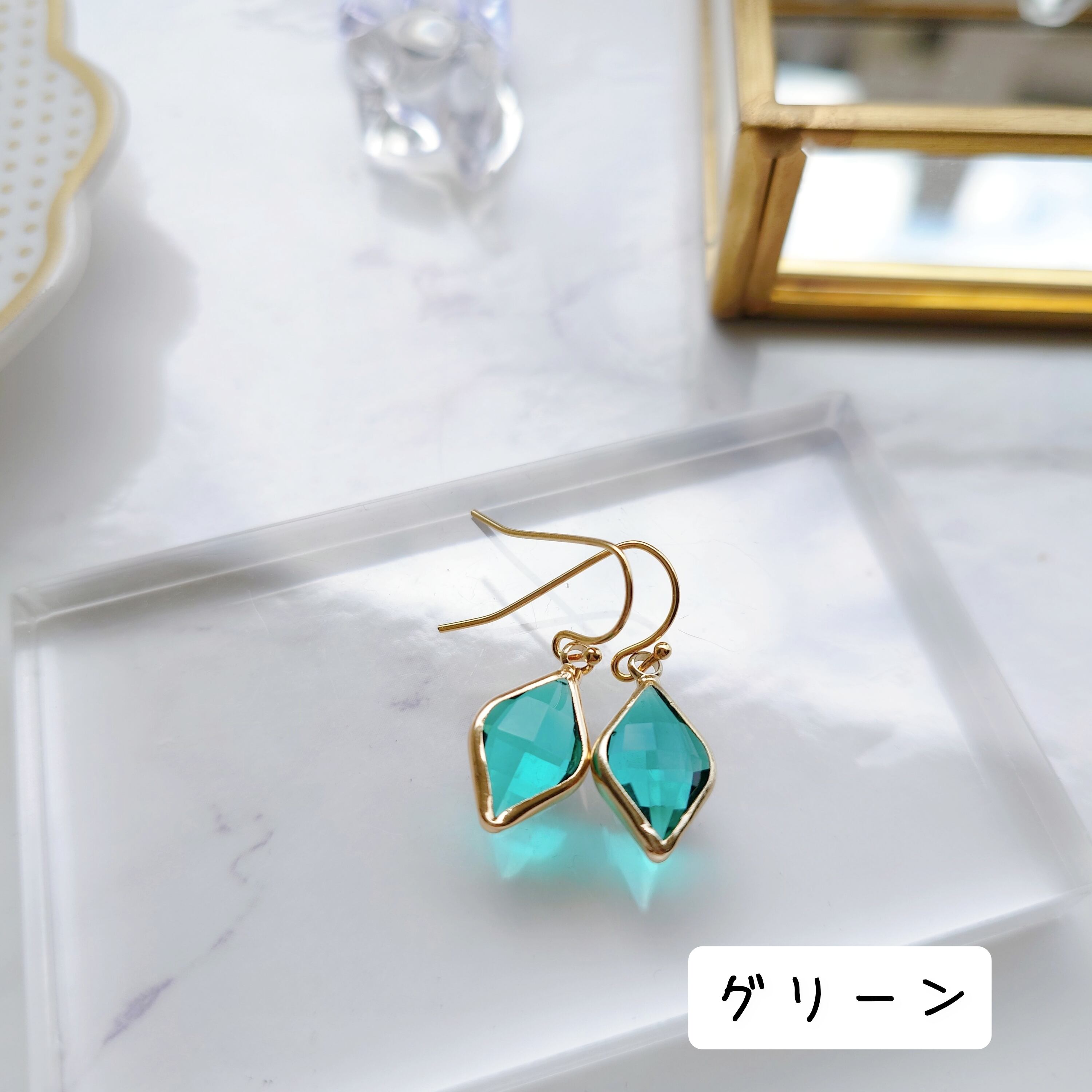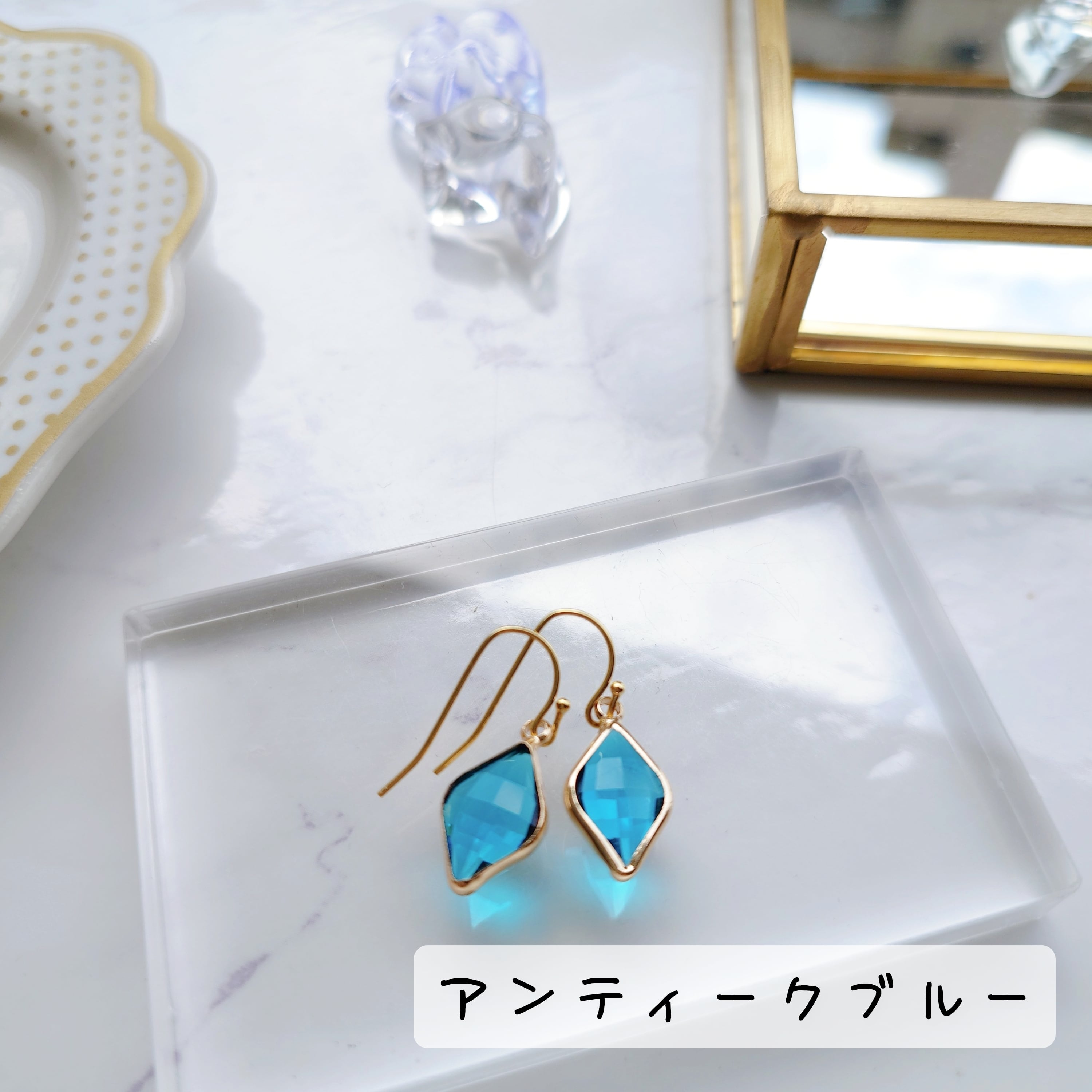洗練されたデザインが魅力のひし形ガラスビーズピアス。